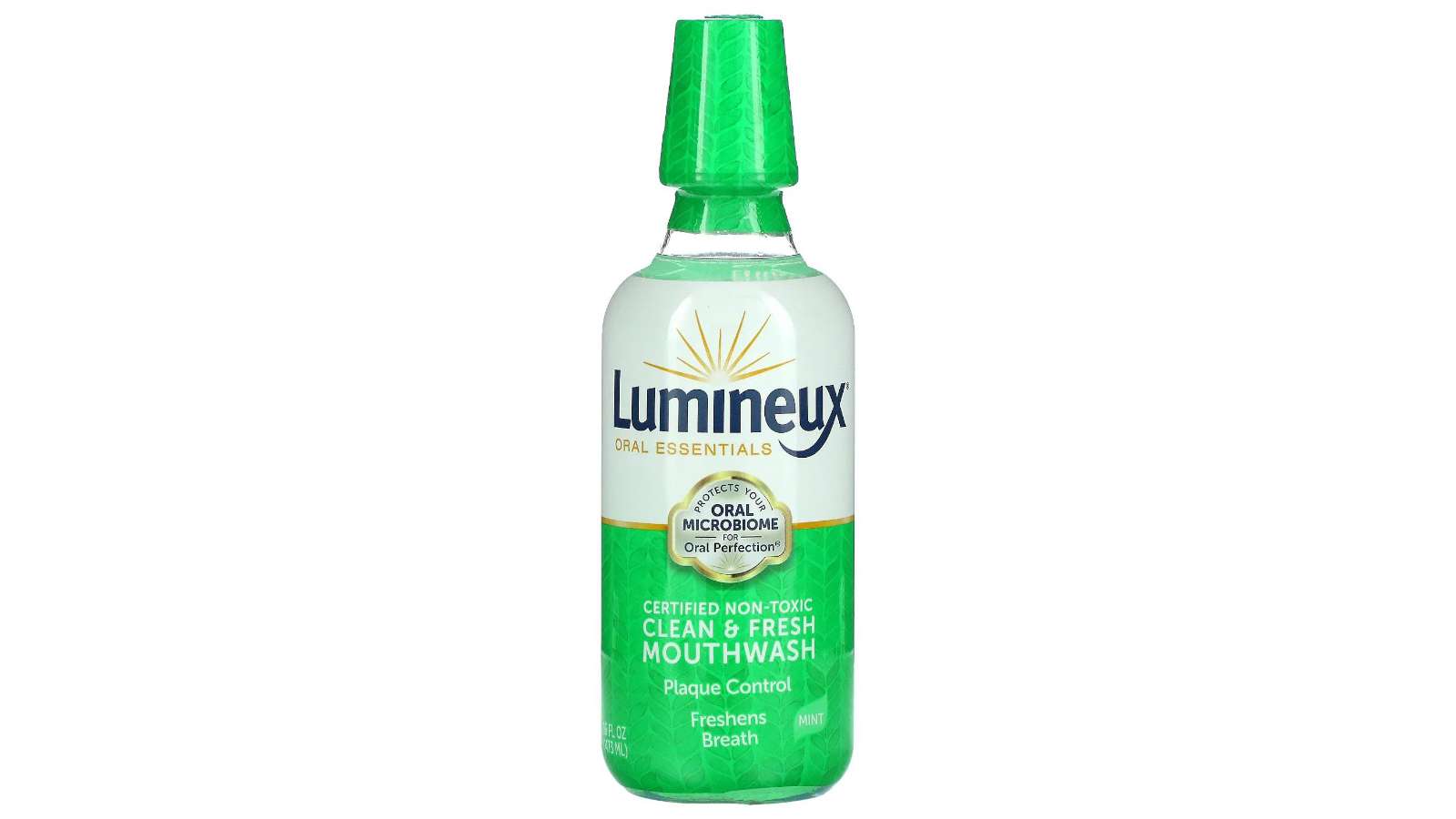 Non-acidic, buffered formula with a mild mint taste that doesn't hurt or burn.