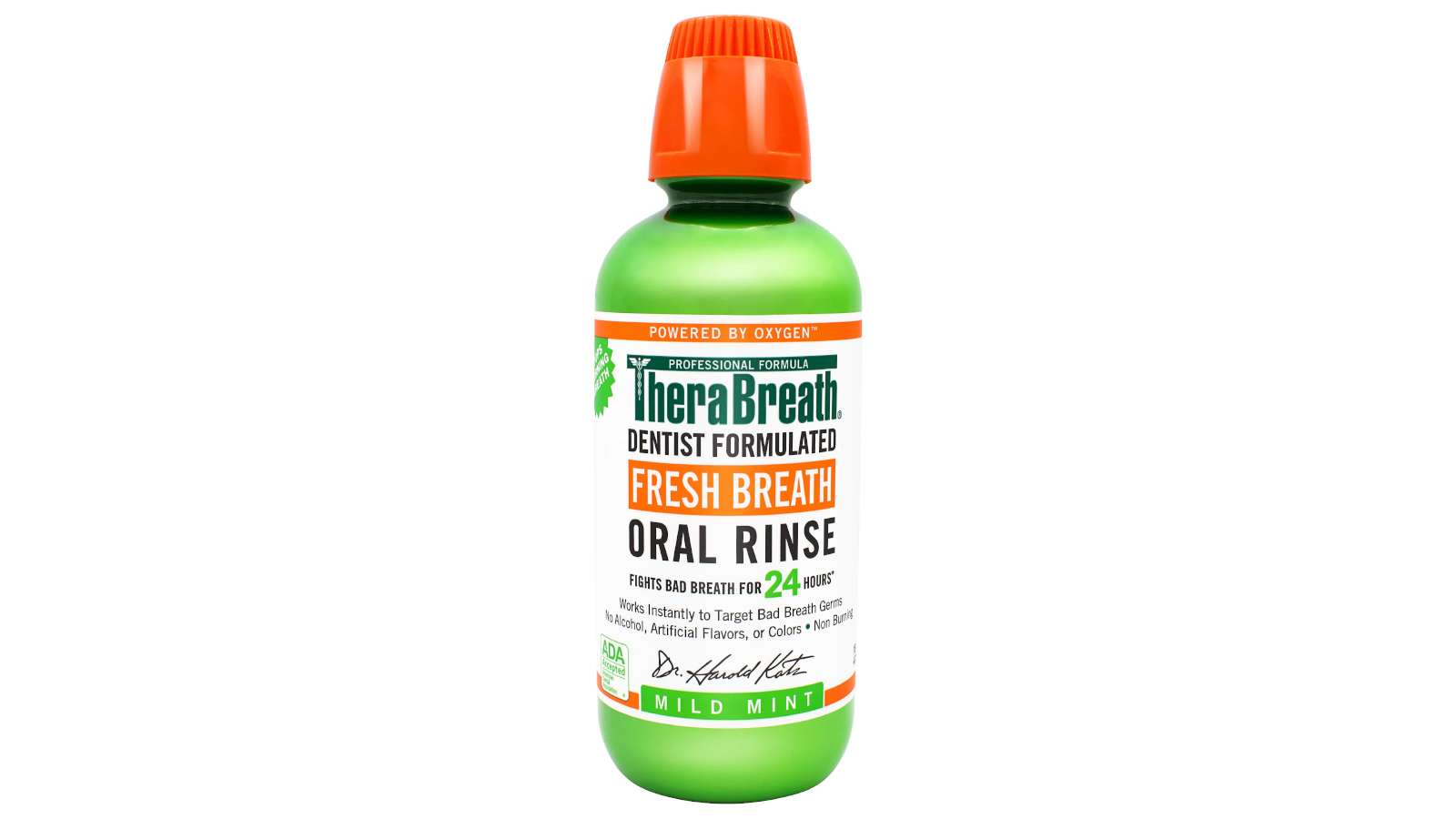 bad breath mouthwashes reviews - bottle of therabreath 24-hour fresh breath oral rinse, mild mint, 16.0 fl oz